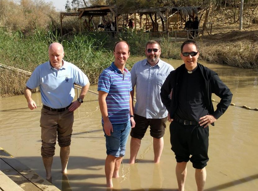 I won’t write a big post here (we can save the details for the next 52 homilies) but just a note about the three photos below: (i) meeting parishioners after Mass this morning in the Arabic speaking Catholic parish of Bet Sahour, very near to Bethlehem, (ii) standing in the River Jordan with fellow pilgrims at the spot where Jesus was baptised by John – just after I had seen a man baptising himself by full immersion while simultaneously filming the event with a selfie-stick held above the water!! (iii) a sycamore tree in Jericho – the inspiration for our Sycamore course – perhaps not exactly the one that Zachaeus climbed up to see Jesus, but certainly very similar to it! I tried to pinch some leaves as a souvenir but it had a big fence round it.